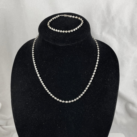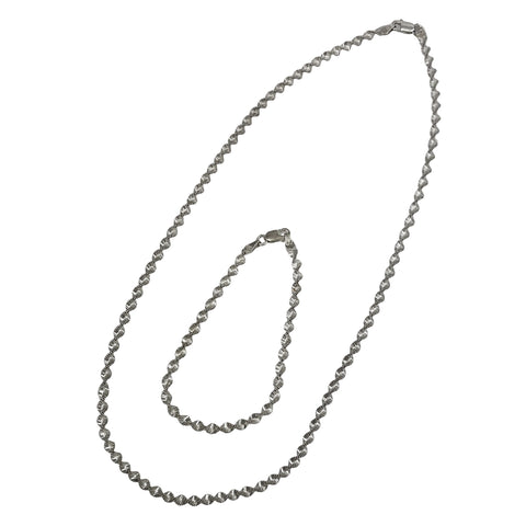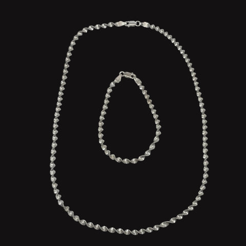 Crafted from authentic Italian sterling silver, this coordinated set features a distinctive twisted design that catches light beautifully. The necklace showcases a substantial 3mm width, paired with a complementary bracelet for versatile styling options. Both pieces are secured with reliable sterling silver lobster clasps and demonstrate exceptional craftsmanship and condition. An elegant foundation piece for any jewelry collection.