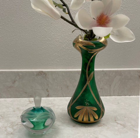 William Glasner Green Glass Perfume Bottle 1992 Signed Numbered