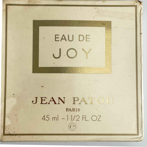 Fabulous Unopened box of Eau De JOY perfume by Jean Patou. Launched in 1930 as "the costliest perfume in the world," Joy by Jean Patou is a legendary, luxurious floral fragrance renowned for its intense concentration. It features an opulent bouquet of 10,000+ jasmine flowers and 28 dozen roses per ounce, creating a rich, sophisticated scent with notes of Bulgarian rose, ylang-ylang, tuberose, and a musk/sandalwood base. This box shows some shelfware from storage, but still has the cellophane wrap. The box says REF. 1204 Made in France.