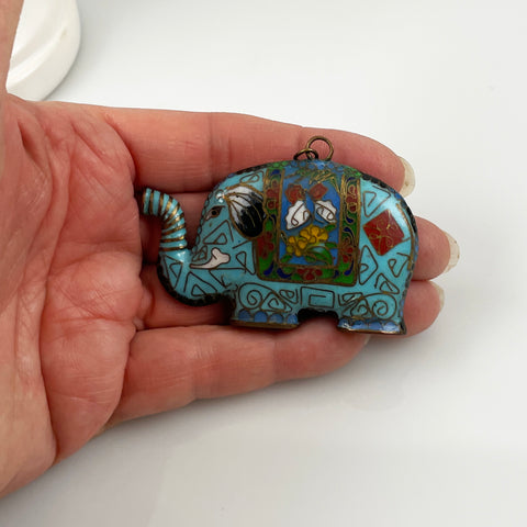 Large Blue Cloisonne Elephant Pendant Vintage Chinese